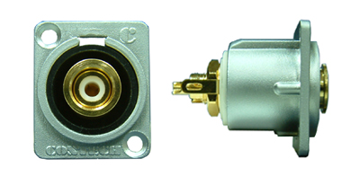 CJ-2RX 先接後離地焊接式RCA插座是設計給一般焊接使用的非平衡信號插座,它的特點是它提供一個具有伸縮且較正極長的的接地端,當插入時接地信號會先導通,或拔離時接地信號會最後離開,這個用意是避免機器在沒有切斷電源時所產生的脈衝電流,X系列的所有插座產品皆屬同1個規格式的面板,它包含了平衡式公母座,6.3及RCA插座,這個系列,可以從前後按裝入機櫃板,這樣不會因為需要更換接頭時去調整面板孔徑的大小,及符合各種配線方式,十分的便利, 並附防塵塞.