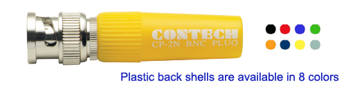 CONTECH 2N插頭, 是由2個零件所購成的專業BNC插頭, 它是針對機櫃裝配時有限的狹小空間而設計, 它的外殼是用有彈性且輕量的塑膠材料,它適用6mm的導線,達到完全遮蔽防塵的特性. 它的中心導體則是採用高導電特性的75歐姆低阻抗鍍金接點及鐵孚龍做為隔離管.適合用於一般工程使用.