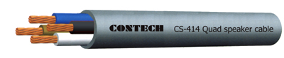 CONTECH CS-414 4心11.0mm喇叭線, 它的內部導線是採用高純度的無氧化銅所製成, 它可以提供在較長的傳導上將損耗降到最低, 並且線外覆皮均採用通過ROHS環保認證的高扭力耐磨型的非移行性的聚乙烯化合物, 這種材料與一般的聚乙烯化合物的不同是它不會因為氣候冷熱的變化而造成線材外皮的改變.